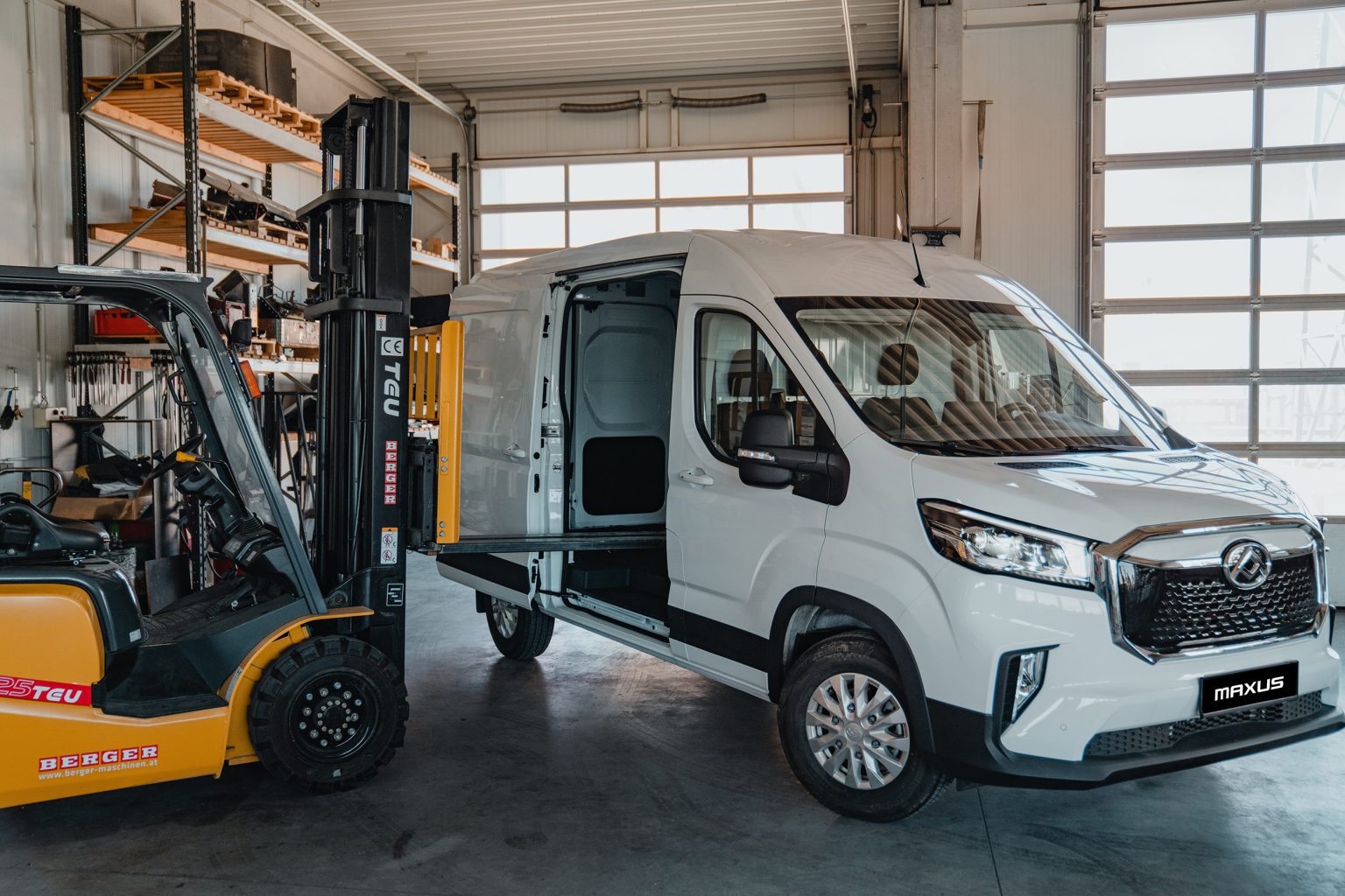 Der Laderaum kann über die zwei komplett zu öffnenden Heckklappen und eine Schiebetür auf der Beifahrerseite mit einer Breite von 126,9 Zentimeter erreicht werden. Dies ermöglicht ein einfaches Be- und Entladen auch mit dem Gabelstapler.