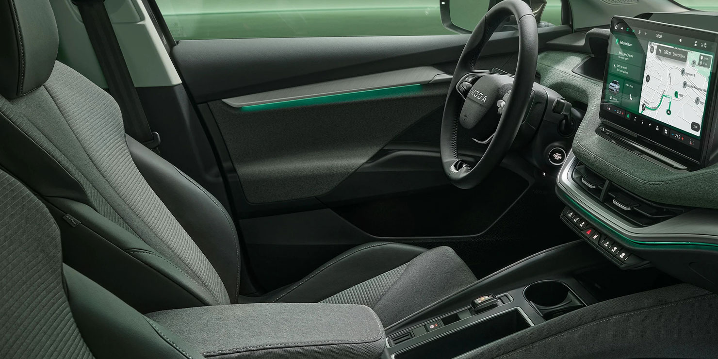 Eine der vielen Stärken des ENYAQ iV ist sein geräumiger und komfortabler Innenraum. Das Neue ENYAQ COUPÉ RS iV baut auf dieser soliden Basis auf und bietet sogar eine noch bessere Serienausstattung. Zudem spiegelt er das ausdrucksstarke Außendesign des Fahrzeugs perfekt wider. Alles in allem ist es ein Auto, das 100 % Komfort mit 100 % Fahrspaß verbindet.